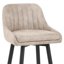 El Taburete Hamilton esta considera una delas piezas más modernas gracias a sus exclusivas características. El cómodo asiento tiene un amplio respaldo para aportar el mayor confort, además de quedar tapizado en una hermosa imitación de ante envejecida que resalta gracias a las detalladas costuras en vertical. El asiento presenta una combinación elegante y complementaria. Finaliza con el marco fijo de cuatro patas en un acabado negro perfecto con reposapiés de cromo brillante a juego con las puntas de las patas, las cuales pueden ser ajustadas para suelos irregulares y constan de plantillas protectoras.