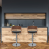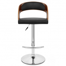La silla de bar Eva está disponible en seis combinaciones de colores diferentes. Sin duda encontrará la que más vaya con la decoración de su cocina. Asiento acolchado en cuero sintético, respaldo y reposabrazos en nogal, pensados para el máximo confort. El asiento se puede regular en altura y puede girar 360º.